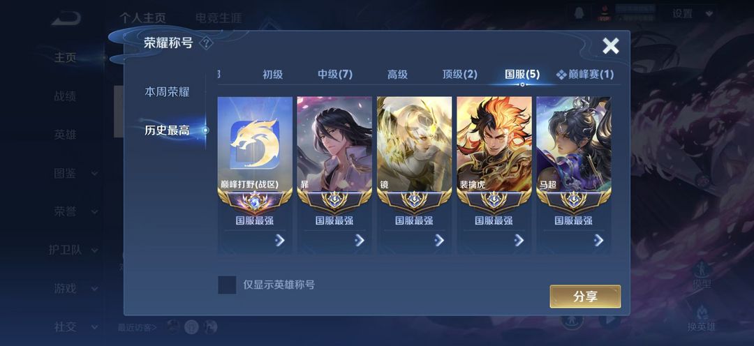 游戏区服:王者荣耀-QQ安卓-QQ账号 -手Q385区-灵山之巅