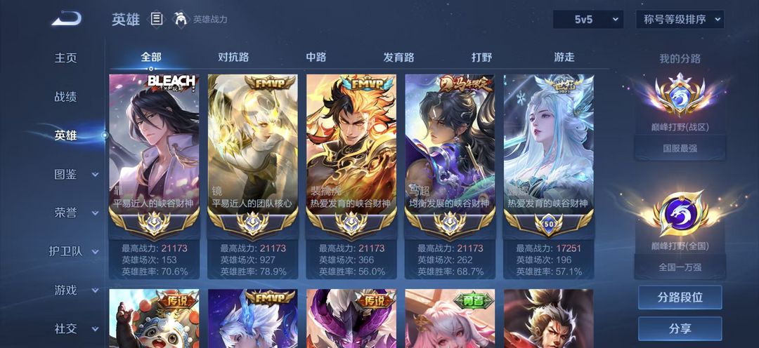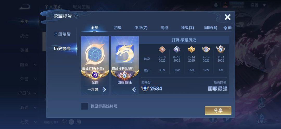新世纪的王✨绝版大国巅峰打野!赛季定榜全国第三!✨超高胜率评分2.1万战镜老虎马超暃露娜 超帅一手号