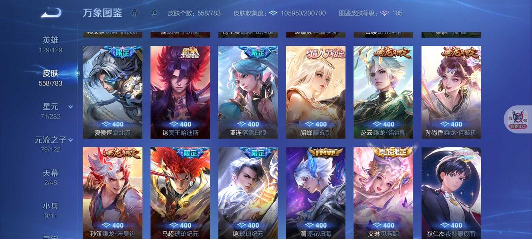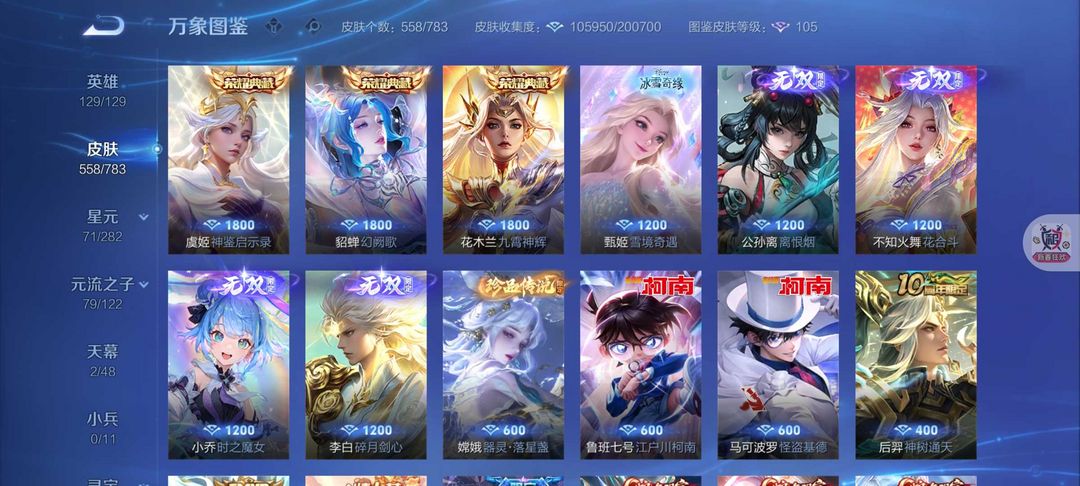 557皮肤❤️4水晶5无双❤️80传说离烟恨❤️花合斗怪盗基德❤️满蛇年限定❤满龙年FMVP号