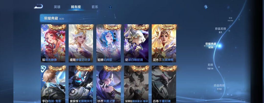 无双贵族v10丨701皮肤丨瑶珍品安其拉珍品丨kt猫小兵丨瑶高战+瑶无双瑶水晶丨满无双满珍品妹子号