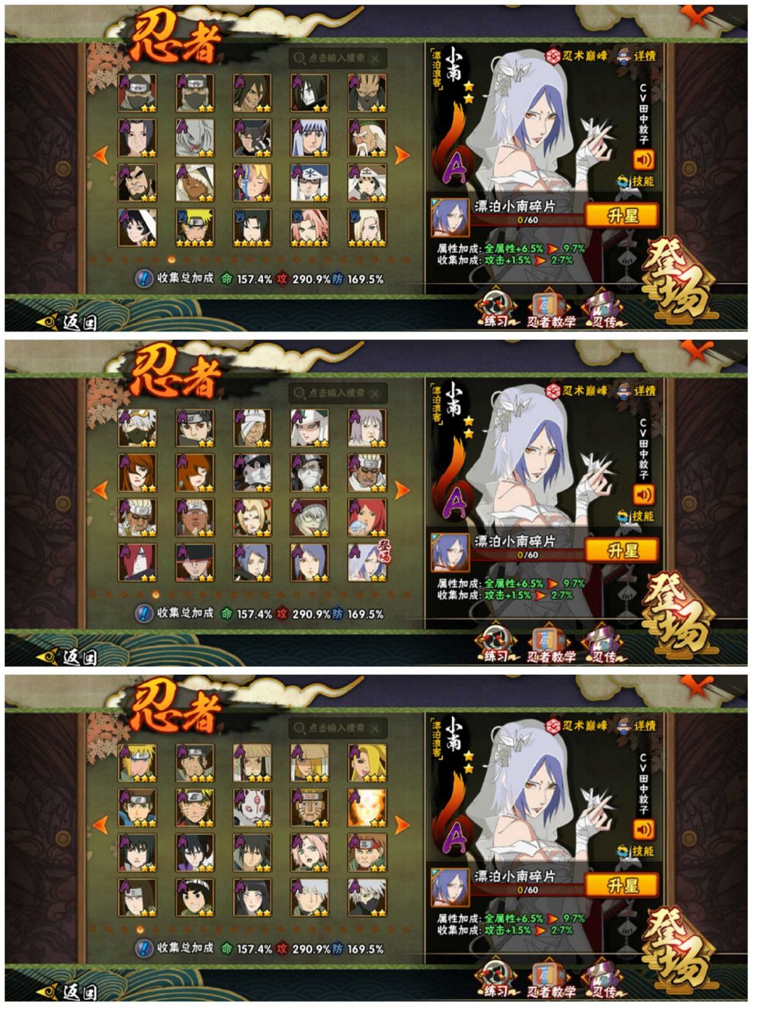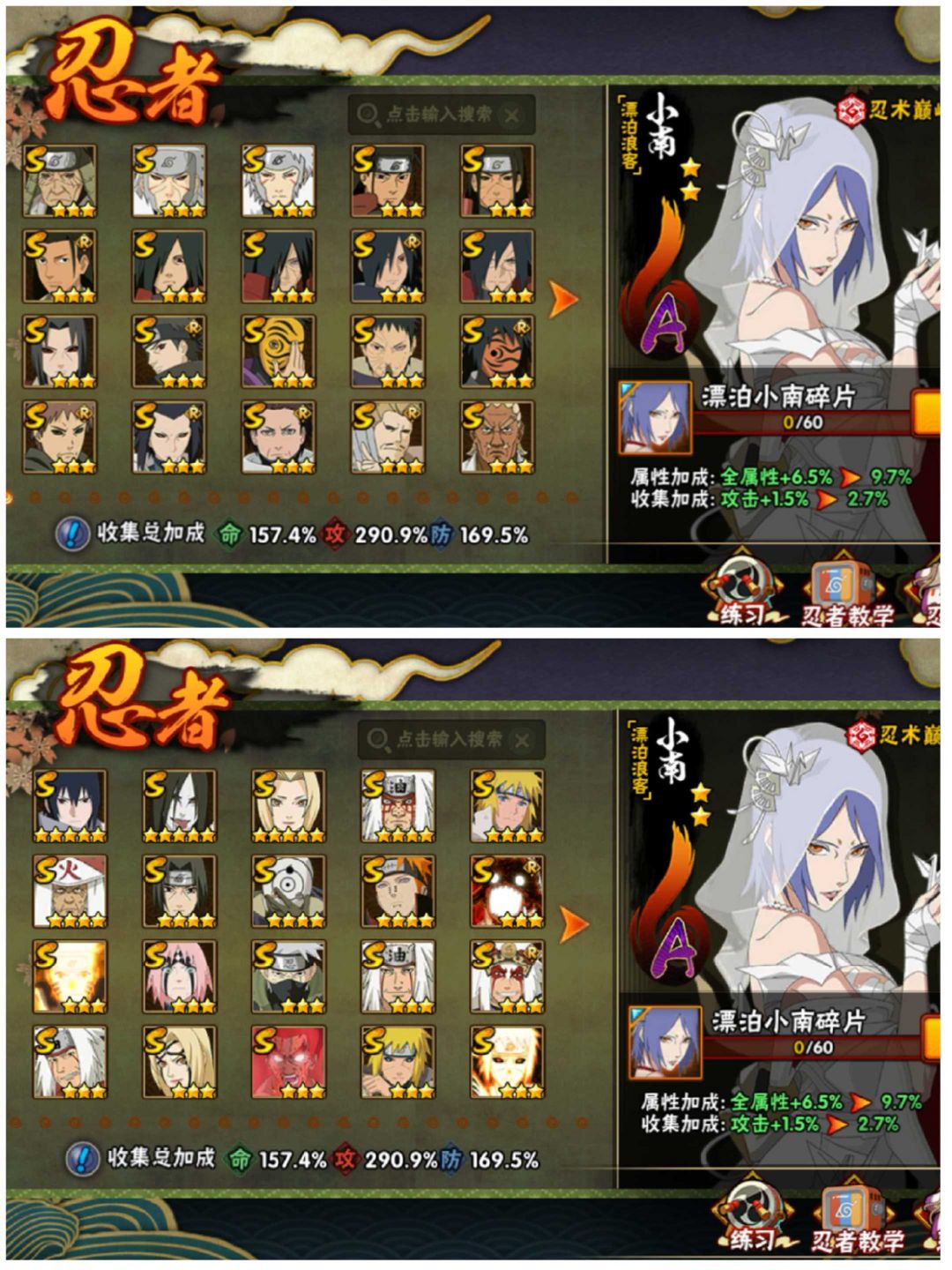 甜妹号♋漂泊佐助已秒♋漂泊带土+皮肤♋47s♋48a♋漂泊小南♋全高招♋12忍法帖♋三代风影