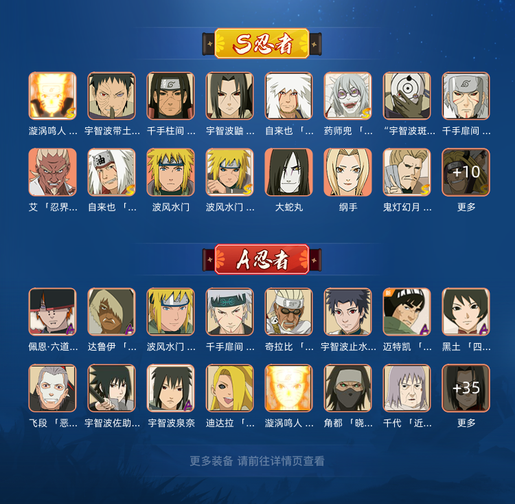 限制: 撤单率<75%才可租用此帐号装备描述:22s传说自来也须佐卡卡西忍战雷影漂泊扉间死门凯丨秽土柱间破面带土秽土鼬白面具、兜惊门凯泳南四尾