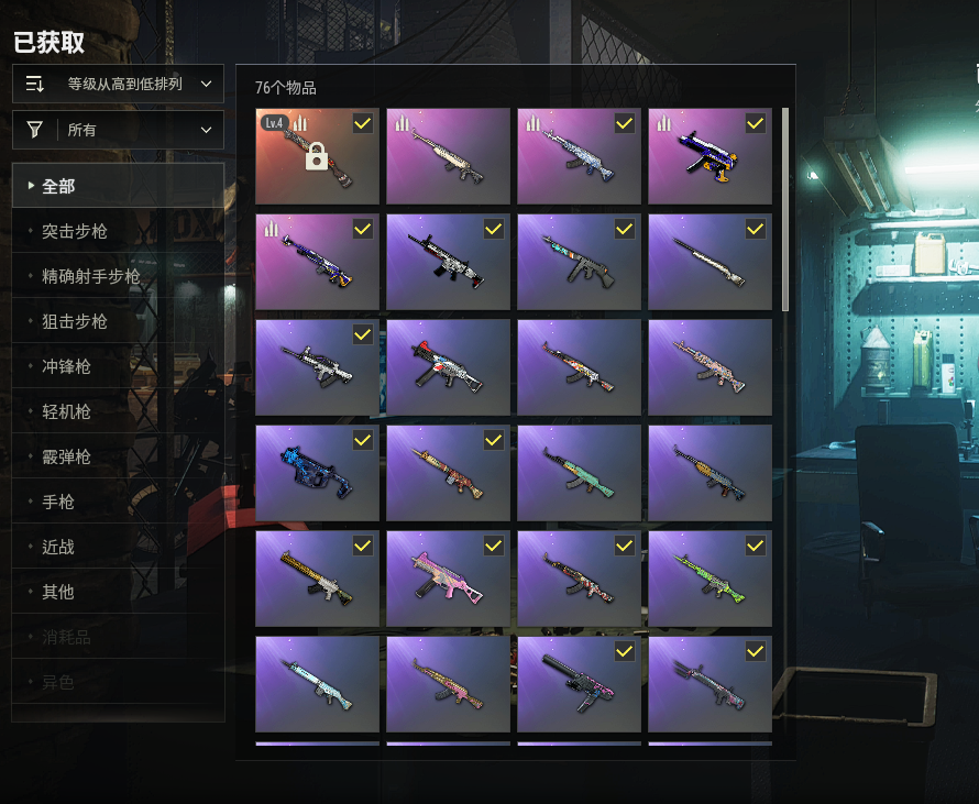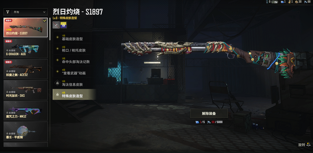 ④级烈日灼烧S1897✅青花之力M762✅山花灿烂M4✅竞速之道AKM✅十字军SKS✅大理石SLR✅