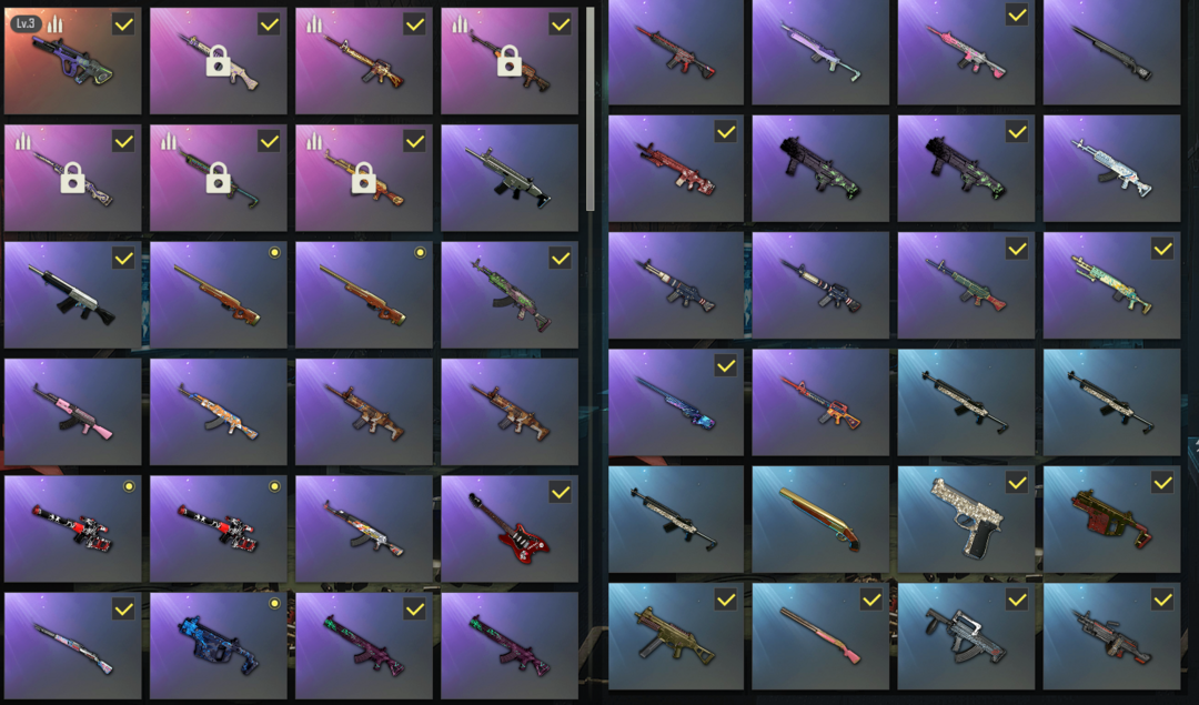满500级✅3级霓虹AUG✅霓虹MN14✅孙悟空AK✅熔岩SKS✅猎人M762✅疯狂M4✅PGC斑斓