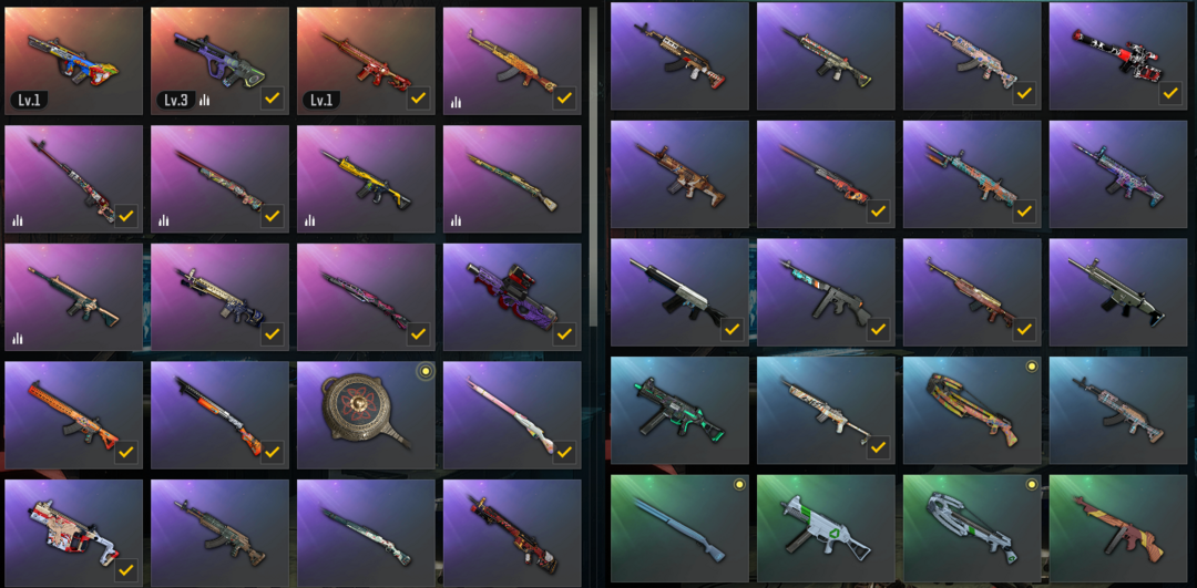满级号✅马丁跑车✅3神器✅霓虹AUG✅弹珠AUG✅朱雀M4✅猎人套装✅PGC战术礼包✅PGC帝皇套装