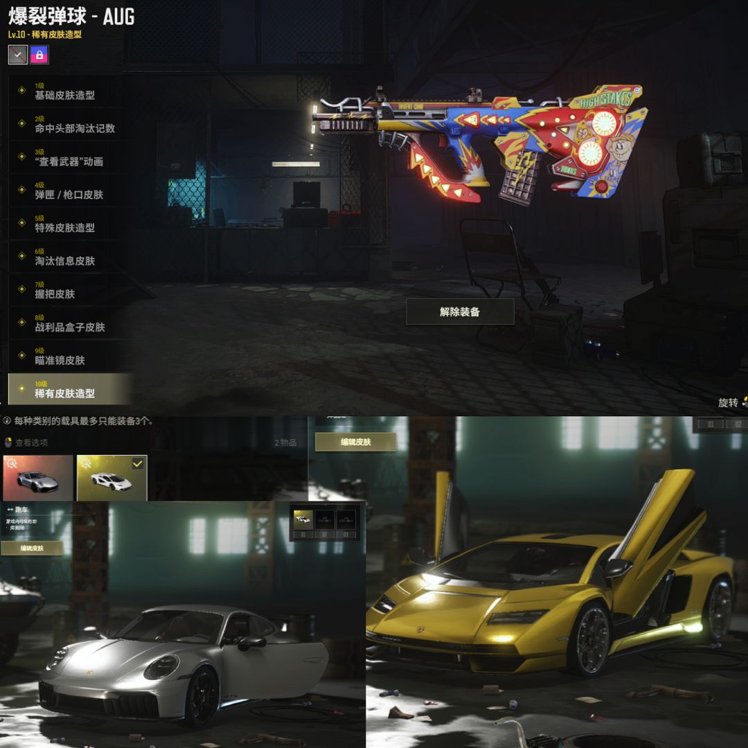 保时捷911⑩级爆裂蛋球AUG可排⚛️大牛黄金兰博基尼跑车绿烟滑雪镜金面
