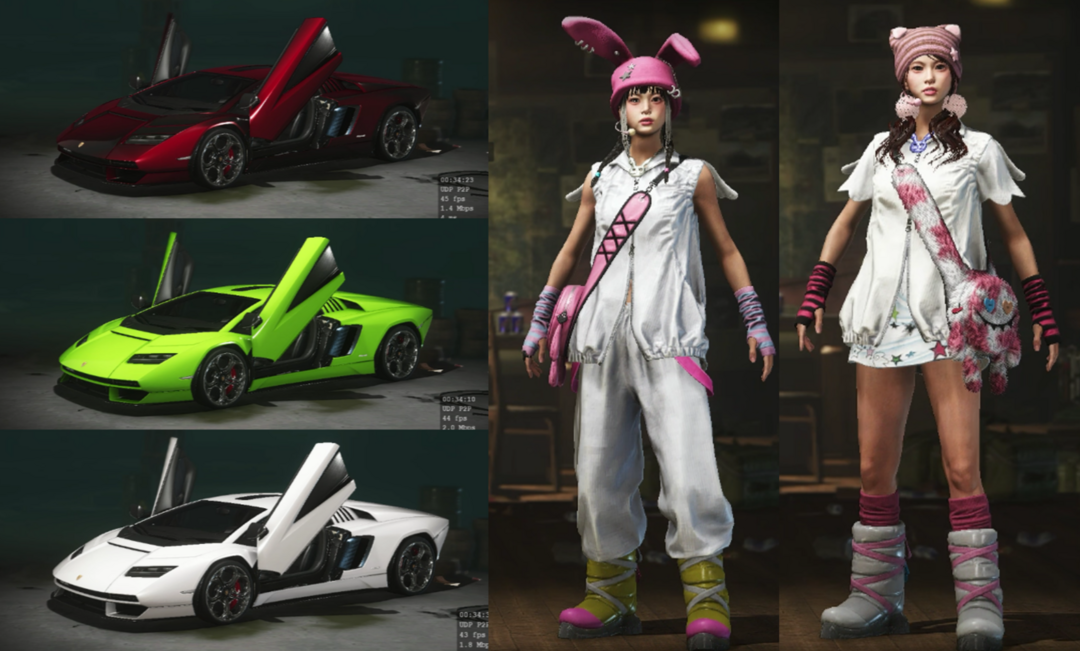装备描述:绿✌红✌白✌兰博基尼究极跑车✌女团HYEIN+HANNI双套装✌⑤时光加农SKS✌发光臂套✌白熊套✌圣诞之子套✌类星之王套装✌窒息的爱套✌小兔学院套/发光鼻✌女团M416✌粉梦M24✌王牌M762✌王牌SLR✌暴脾气M4✌窒息ACE32