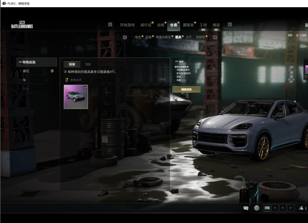 装备描述:保时捷卡宴跑车✨④级最后的小夜曲✨君临寒冬AKM✨渔夫帽✨黑战神裤✨龙之女皇套✨圣柱军团套✨小兔航天局套✨PUBG信条马甲