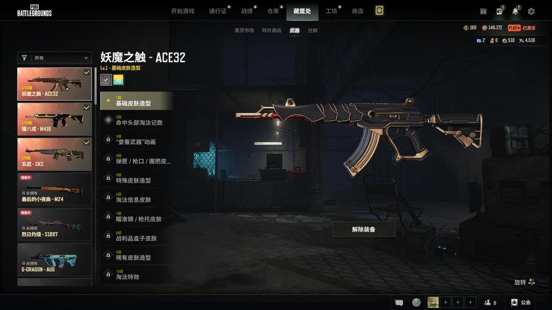 可排位✅4段成长型妖魔之触ACE/猪八戒M416/玄武SKS卡崔娜✅悲喜耳机渔夫帽✅小蜜蜂套装✅迈凯