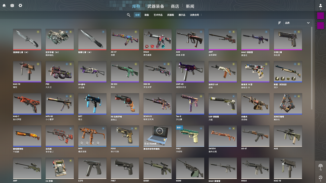 完美新手⭐双刀⭐双原皮骷髅+烫手刀⭐银色手套⭐夜愿AK⭐黑色魅影M4A4⭐黑莲花M4A1⭐金粉蛇狙⭐