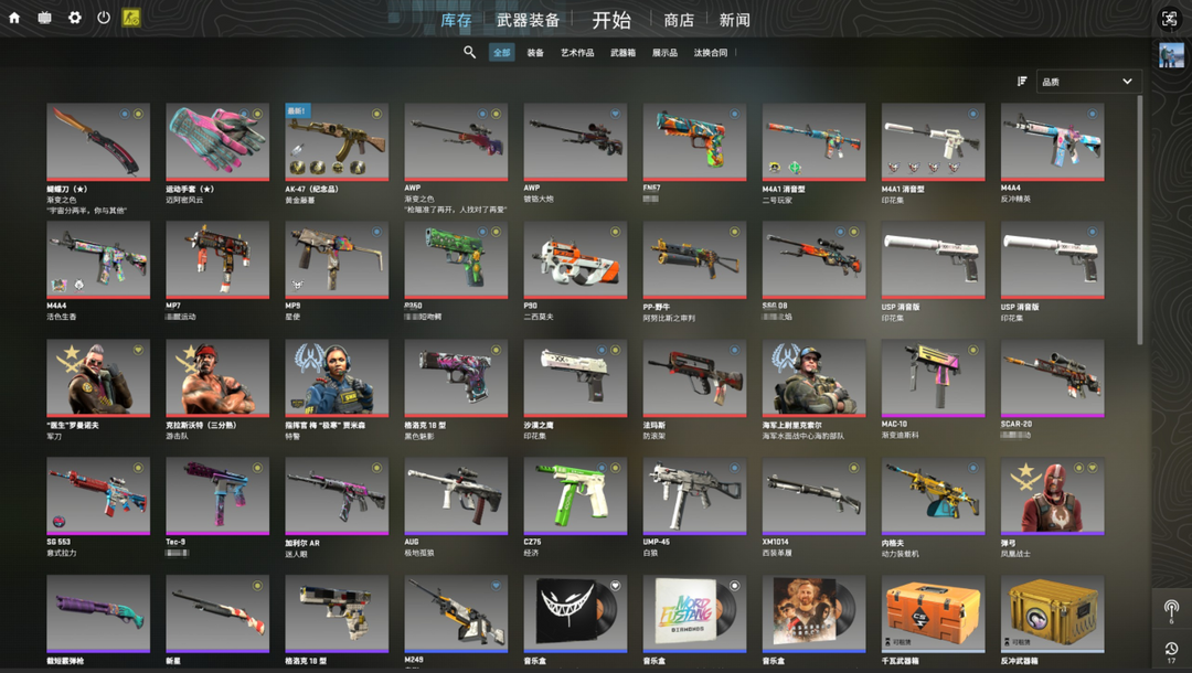 可完美/世界第三崭新黄金藤蔓AK/渐变蝴蝶刀/迈阿密/满色渐变狙/二西M4/传承AK/印花集A1
