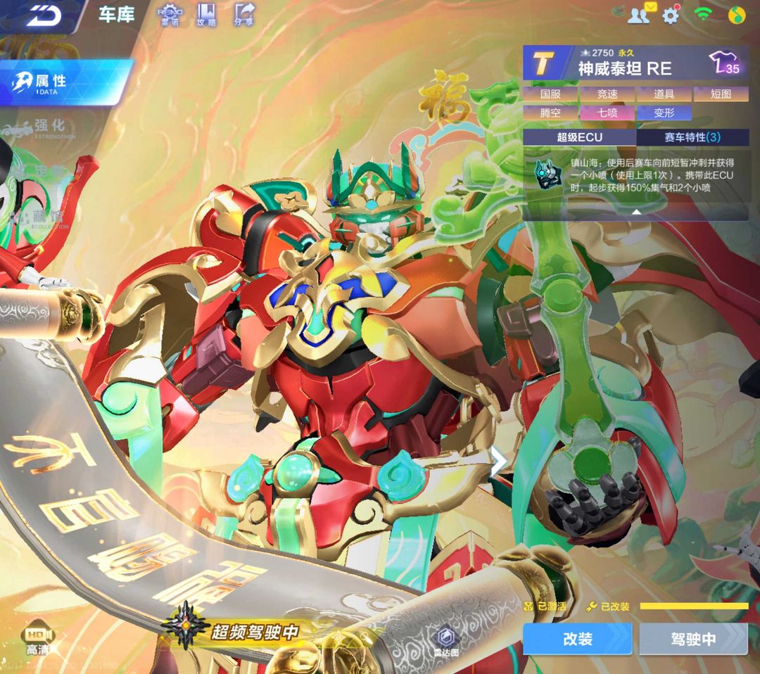 装备描述:2T❤新机甲T-云旌❤泰坦万象承福❤骑宠-莲梦灵蛇❤霆光玄火