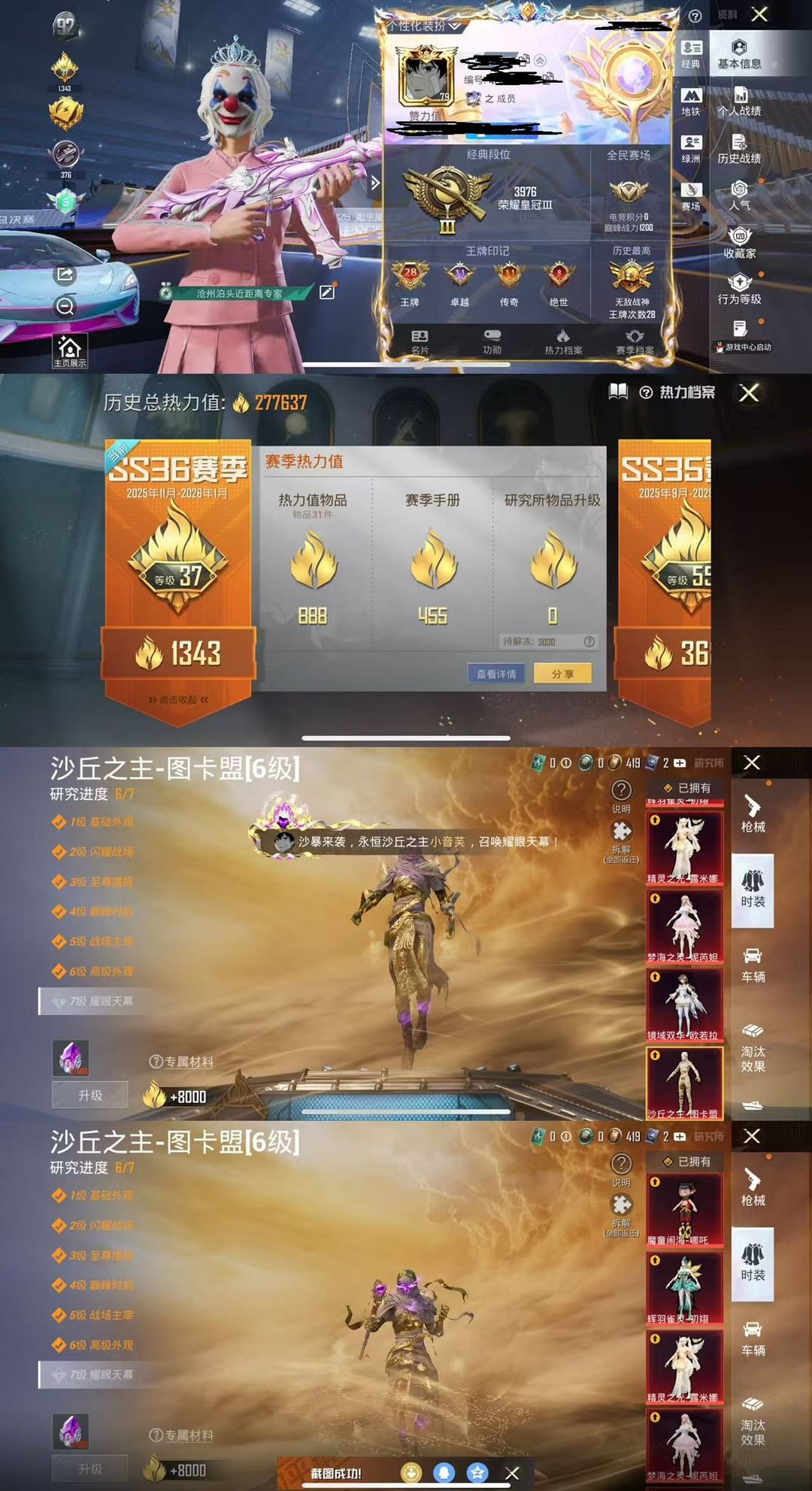 绝世战神❤90粉40枪15车❤老101小丑雪国螳螂身法套❤6级图卡盟6红❤9级女娲❤双满级车