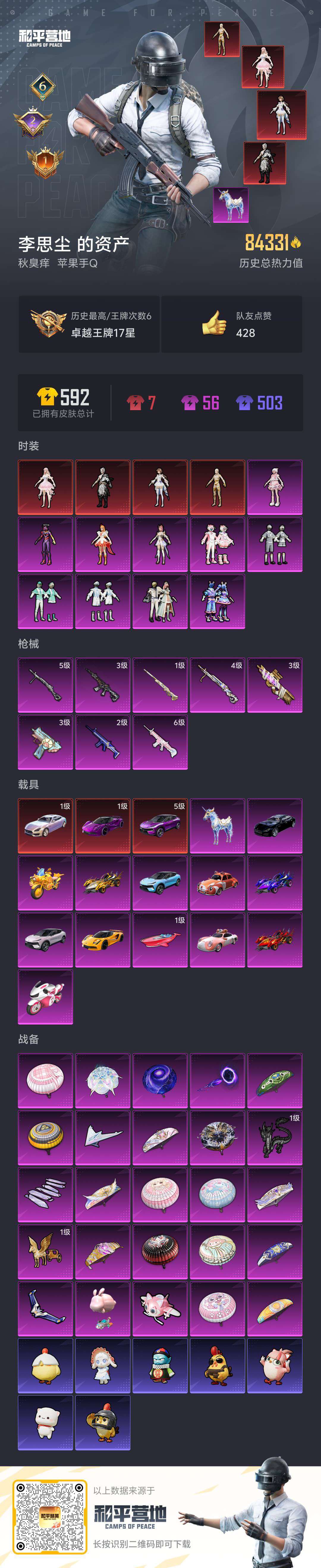 苹果q区,四红装,木乃伊,100套装,113枪皮,16载具,7个飞行器。