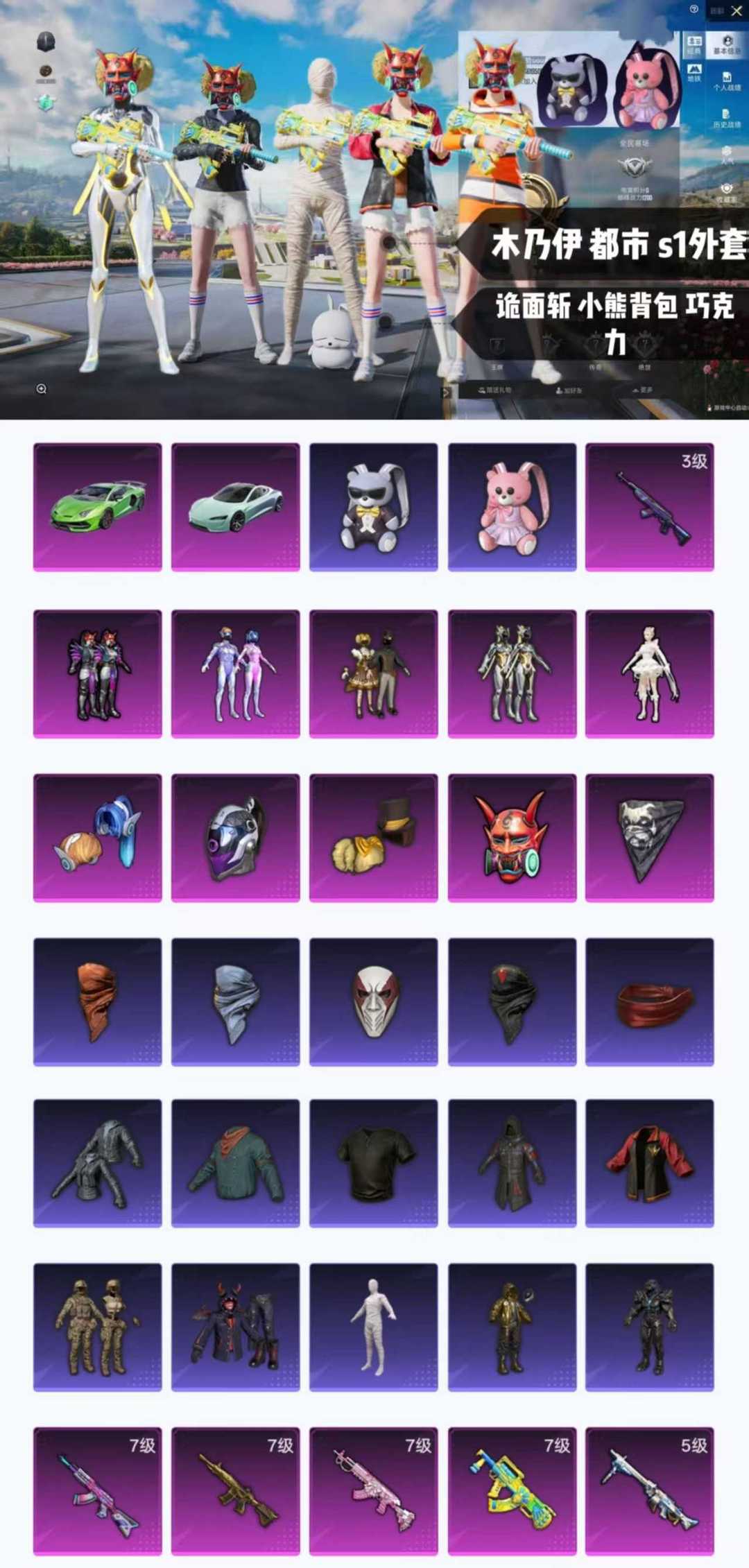 精氪男神小素材/木乃伊/都市/诡面斩/小熊背包/甜心巧克力/西部牛仔口罩/满级特效枪/兰博基尼/特斯