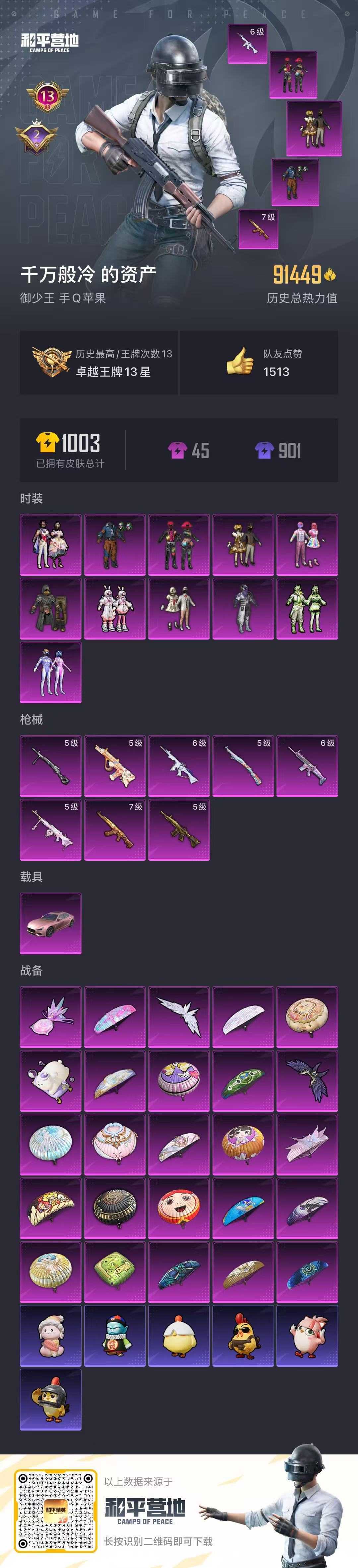 装备描述:1玛莎拉帝,11个粉装 各种升级枪 精氪男神号