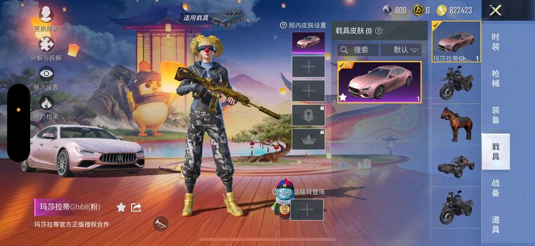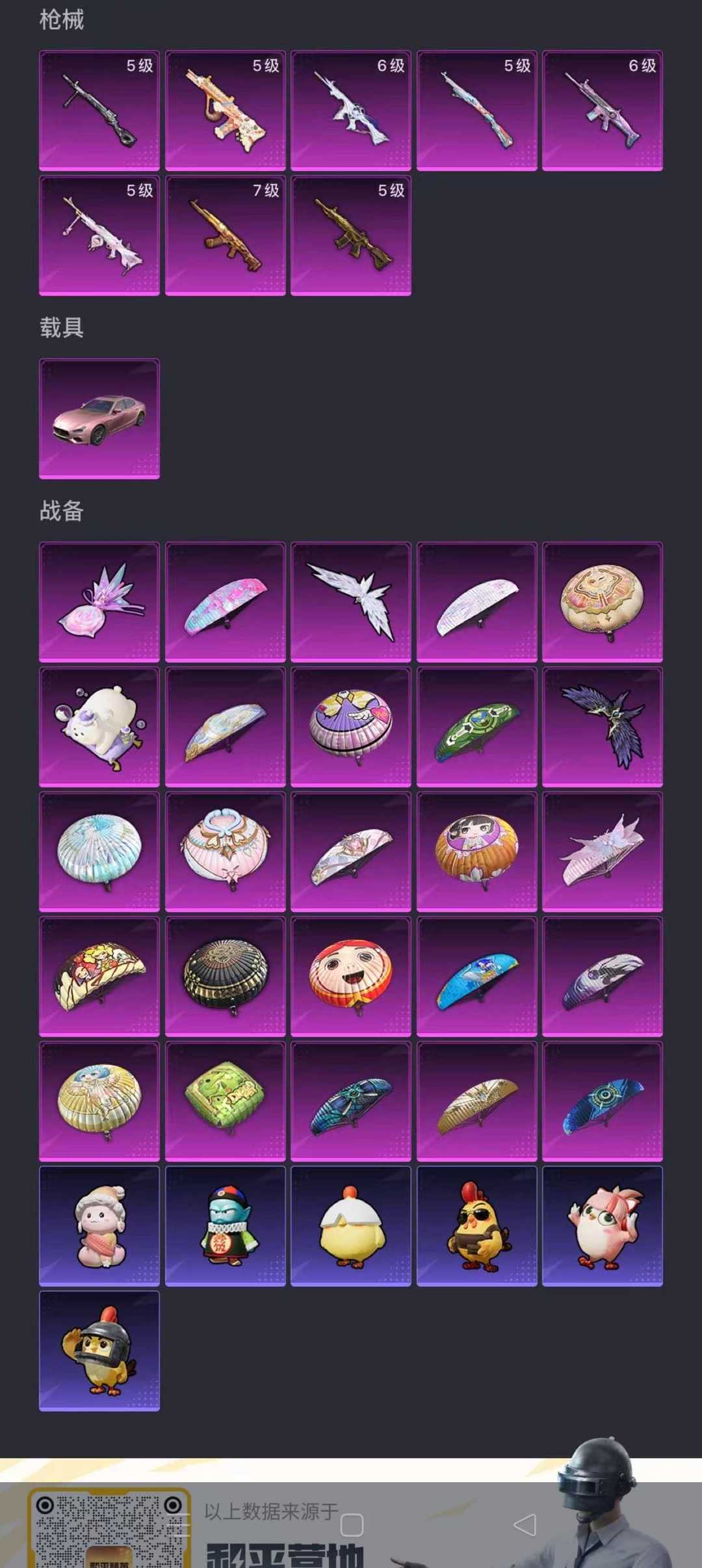 11粉皮➕1车粉色玛莎拉帝,6级女娲m4各种升级枪,粉熊背包 国宝头盔