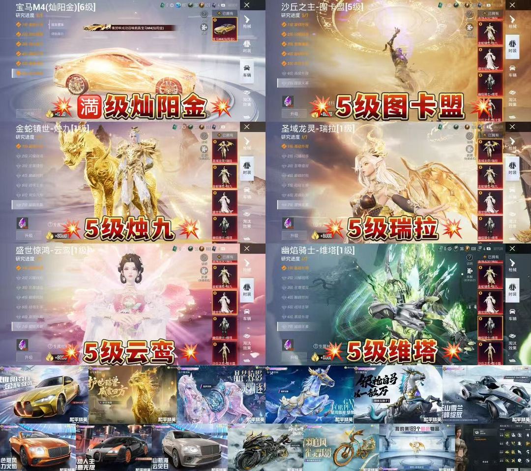 5红35粉35枪10车素材✨5级图卡盟✨满级女娲灵识黄金宝马✨瑞拉✨烛九✨维塔✨螳螂✨猪妹✨赤蝎金鞋