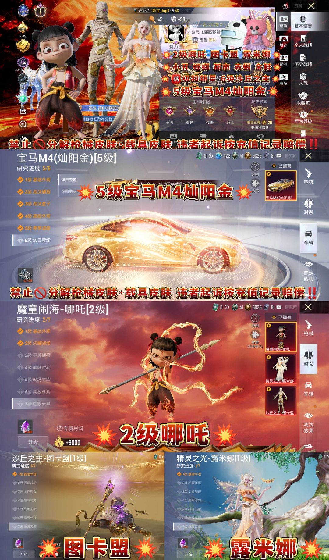 极品素材号⭐3红装哪吒图卡盟露米娜⭐8把9级枪满级超新星魔童闹海⭐5级宝马双小丑猛男套甜心101