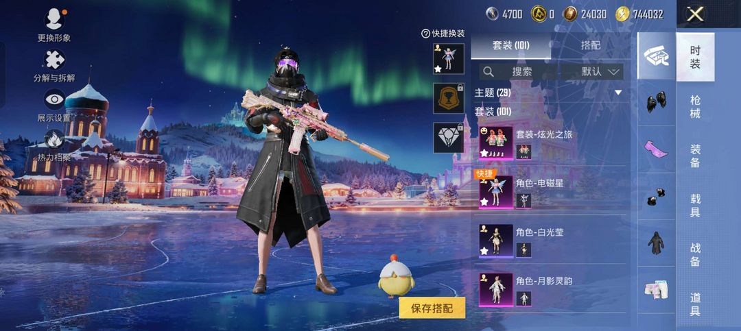 3粉装(角色—电磁星)/1特效枪(M4心之恋语)0载具/3飞行器