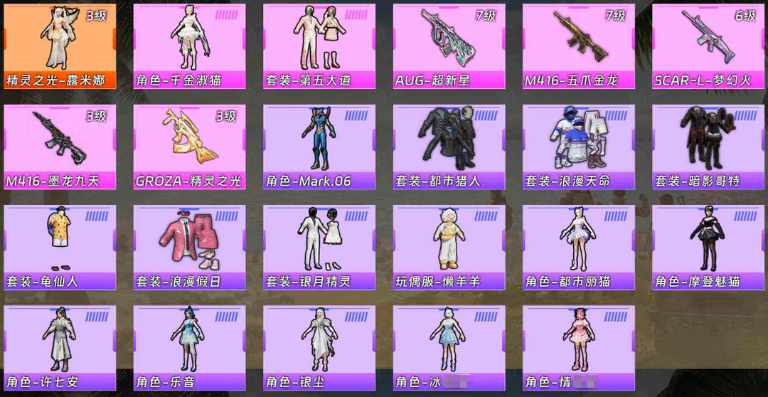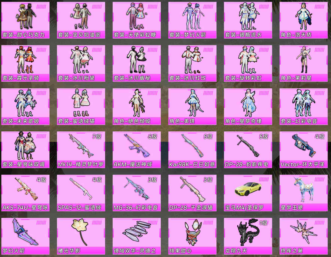 【红装:1 粉装:21 粉枪:14 载具:2】红米娜♥梦幻火箭♥蓝螳螂♥都市♥哥特♥洛天依♥摩登猫♥