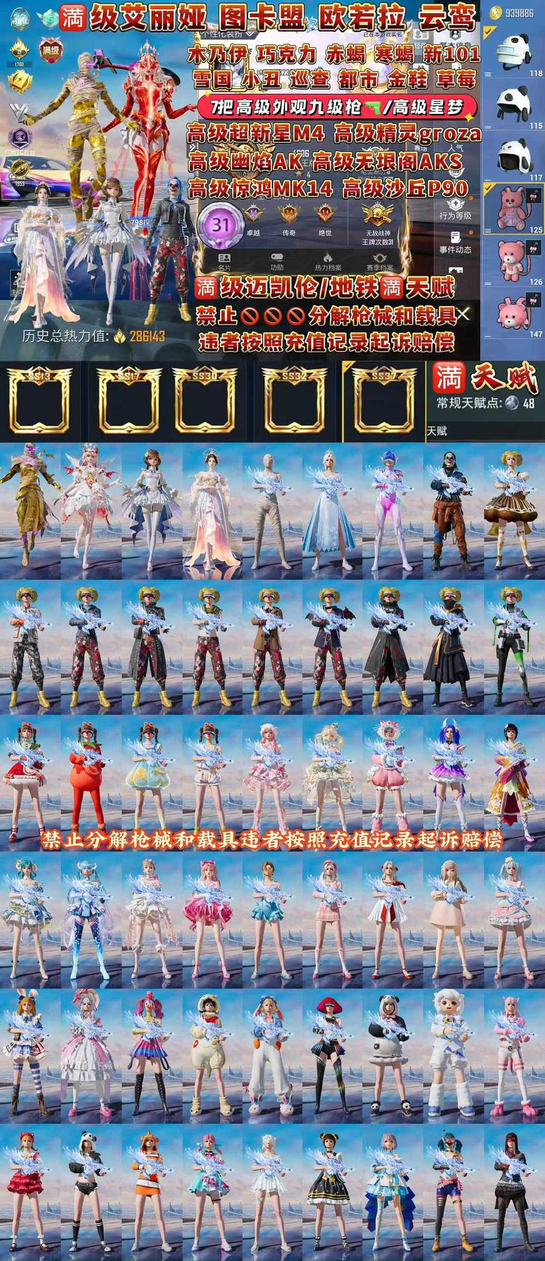 限制: 租号21次及以上 |装备描述: 特别声明!!!! 不要相信评论下面的都是pz 不要相信评论下面的都是pz 不要相信评论下面的都是pz 分解载具枪械永久拉黑不解除 【乱投诉拉黑】和平号有问题/上不去/其他问题/ 特殊需求/投诉没用等问题 账号累计充值超20万!切勿开挂/分解装备/恶意骂人/等等违规行为,发现违规必追查到底(平台登录记录,游戏登录ip手机号 设备串号 充值付款记录不要侥幸现在网警都能调到你的所有行为记录就算盗用他人信息也一样能查到你头上)按账号充值金额=起诉/刑事立案/追责赔偿! 非速玩【非云!本机设备畅玩不卡顿】