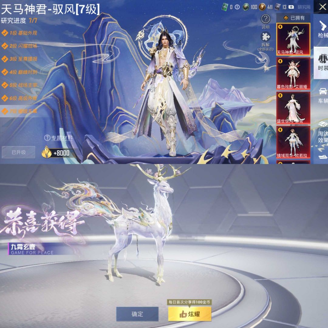 本赛季战神/满级新红天马神君新鹿马/满级迈凯伦/满级74U无垠阁/满级AUG星梦/7把满级9级枪/