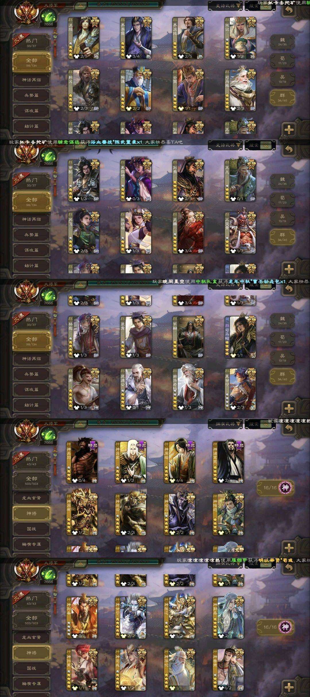 有卡(缺换将)黑金框排面/枭龙破渊曹髦/势国渊/笮融/势魏延/龙兴蜀川刘焉/动势陆郁生/强力天宫齐