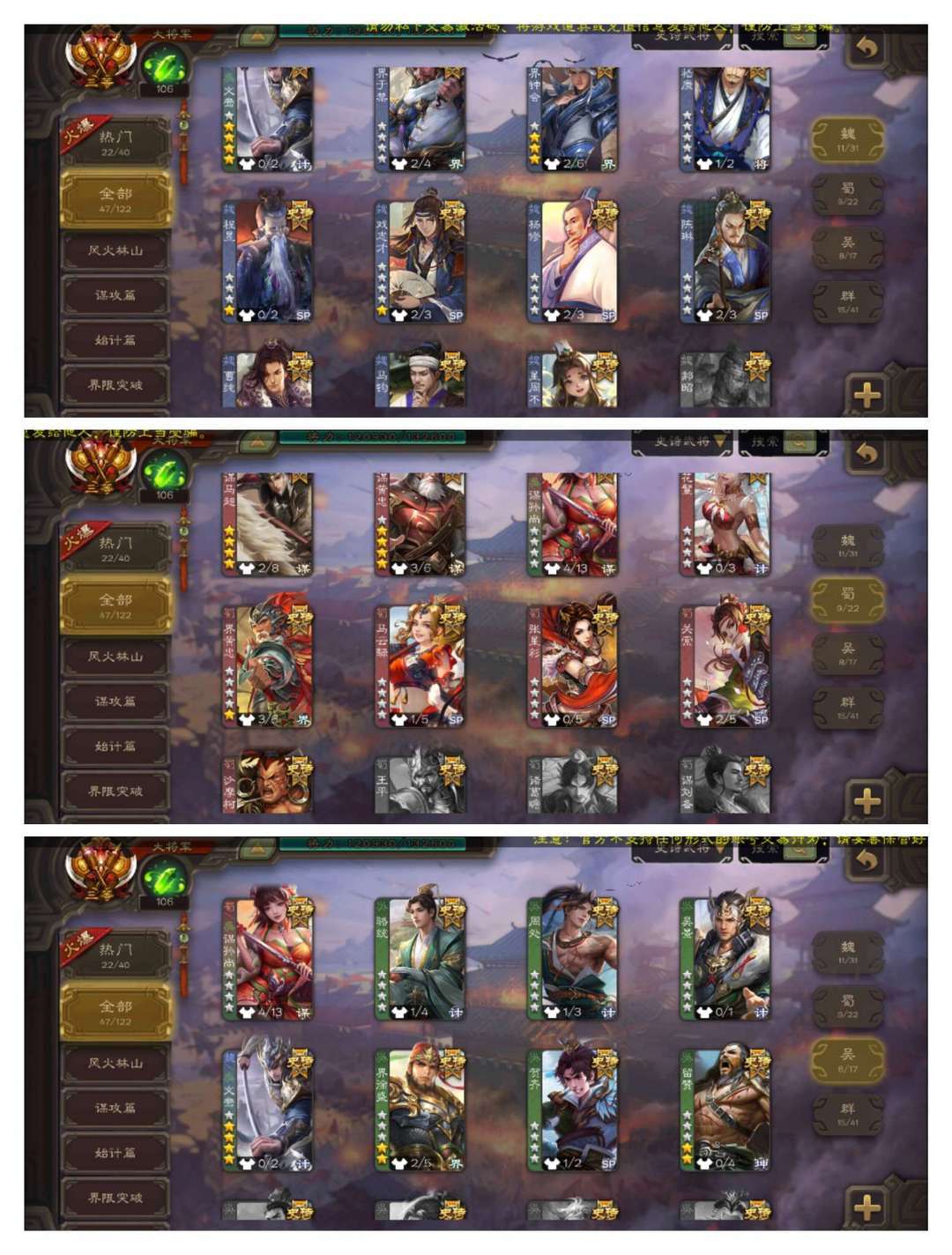 有卡【47史诗大将军】动刘焉动神郭嘉动神甘宁动谋黄忠*文鸯神孙策界沮授杜预马钧界徐盛祢衡留赞阎象曹嵩