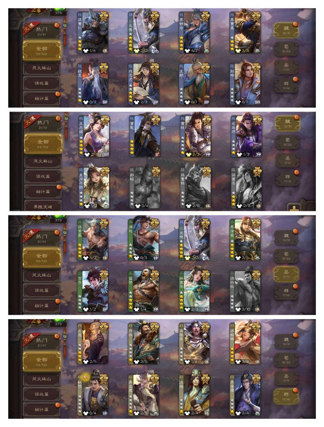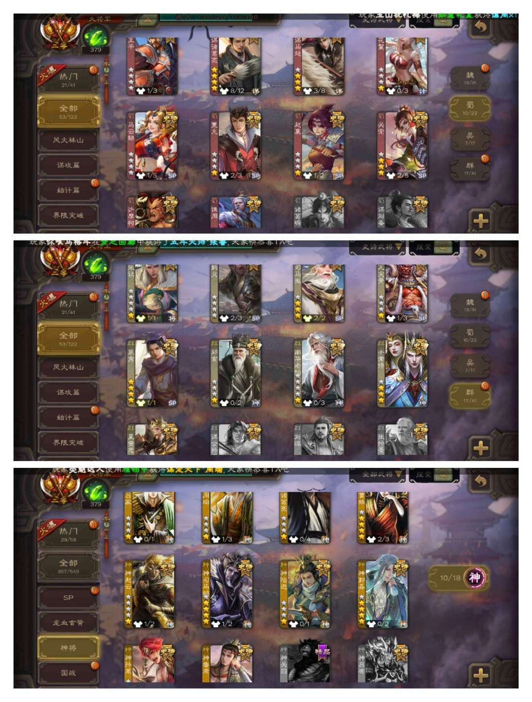 有卡【53史诗二等大将军】双形态动文鸯*动孙寒华动神孙策动谋黄盖动神曹操*曹髦十常侍神司马懿神鲁肃