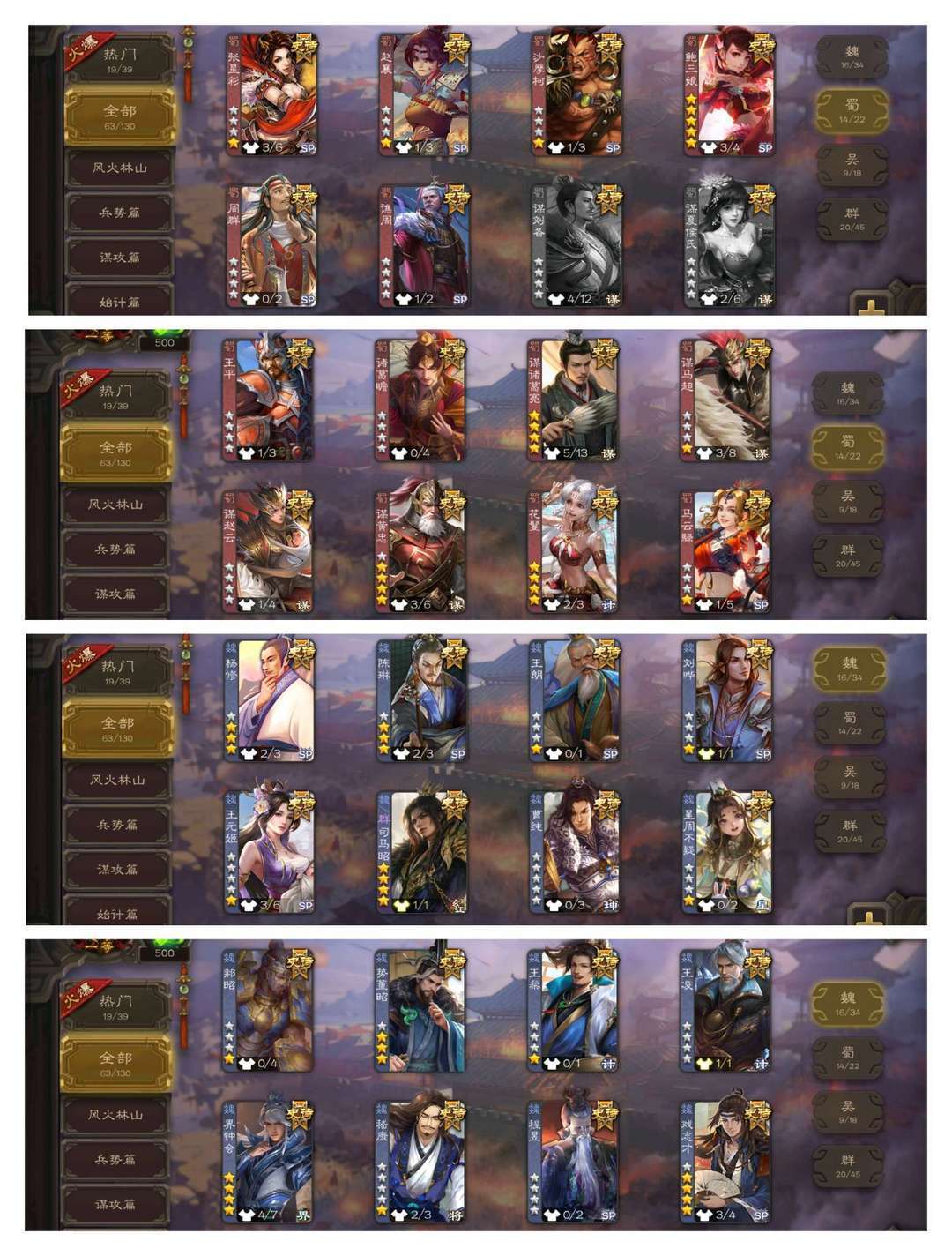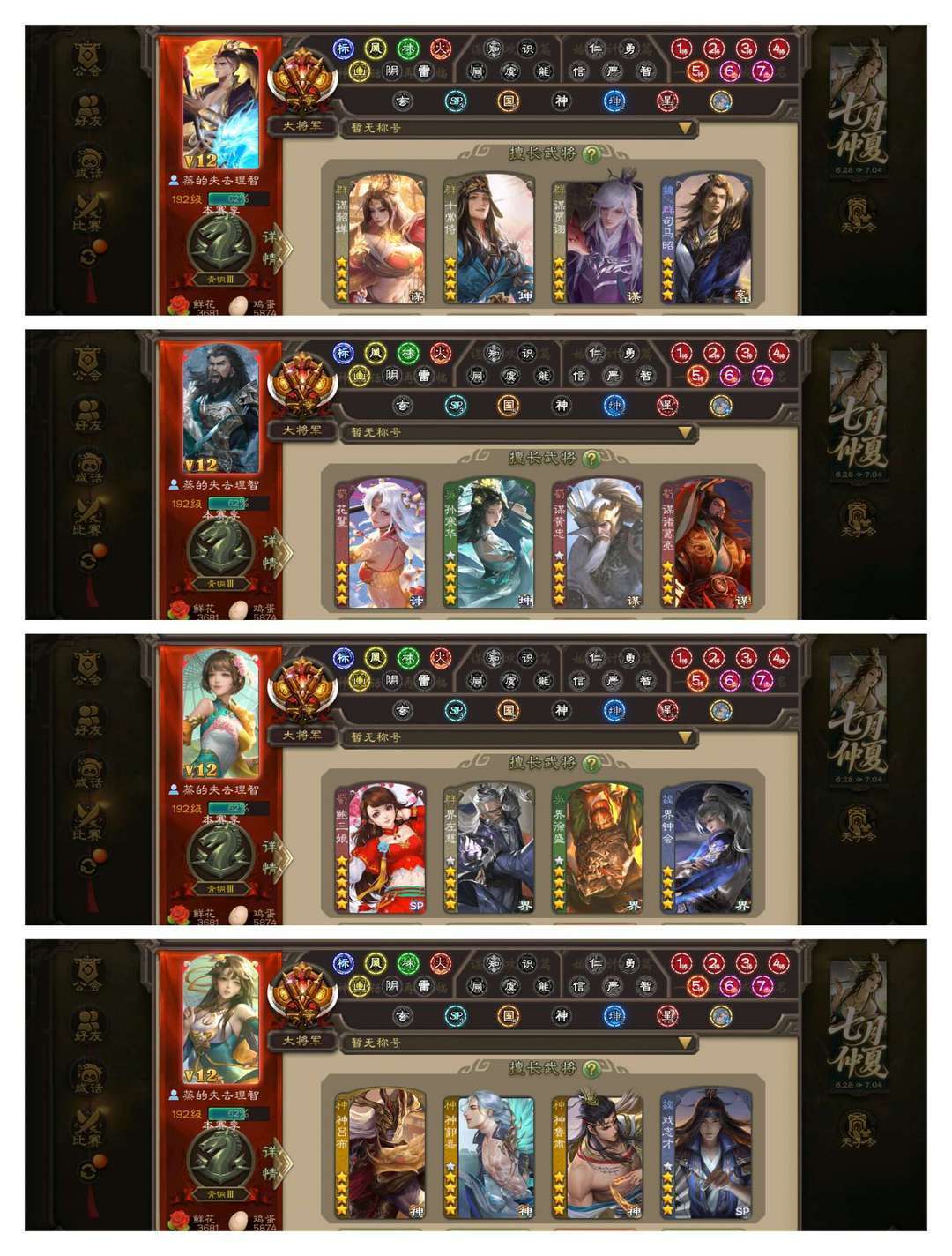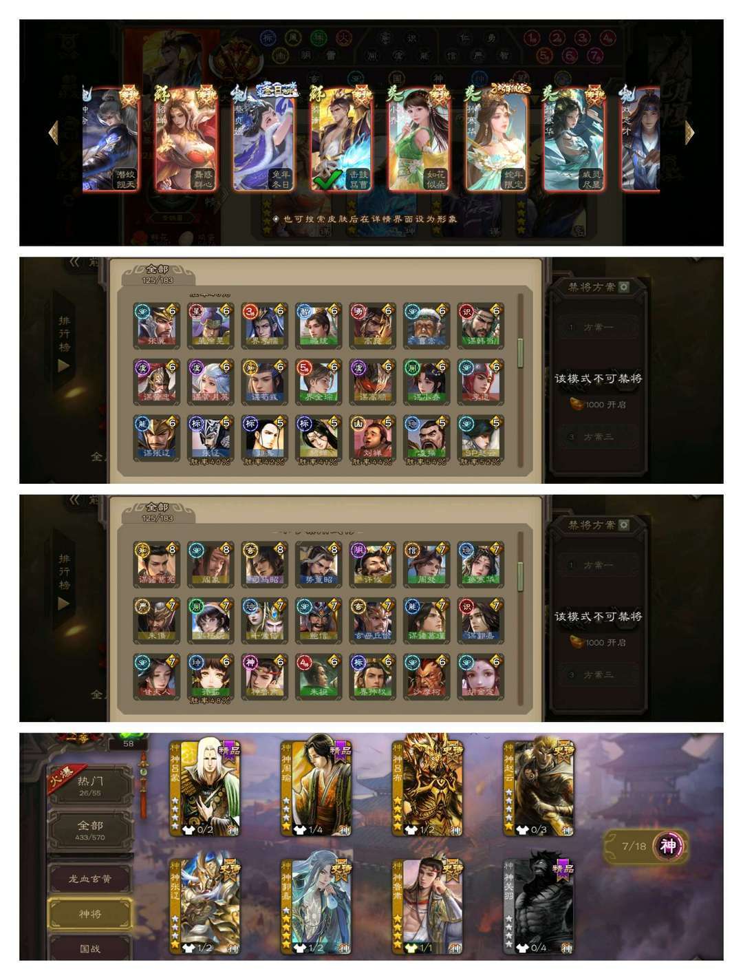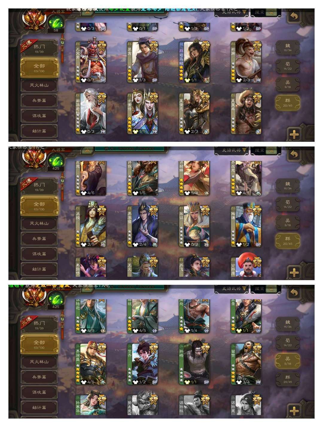 有卡【一等大将军】双形态动十常侍*动鲍三娘动谋诸葛亮动谋陆逊动谋黄忠动孙寒华动神郭嘉*势董昭神鲁肃