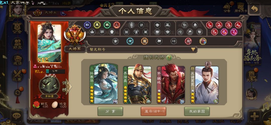 装备描述:【有卡三卡】大将军动崔芙/势魏延/友诸葛亮/势太史慈/奇门孙寒华/友徐庶/神孙策/清河公主/谋貂蝉/界徐盛/南华老仙/sp曹操鲍信阎象势黄祖谋诸葛瑾谋大乔谋黄月英谋荀彧势庞義吴珂谋贾诩谋甄姬来敏陈珪