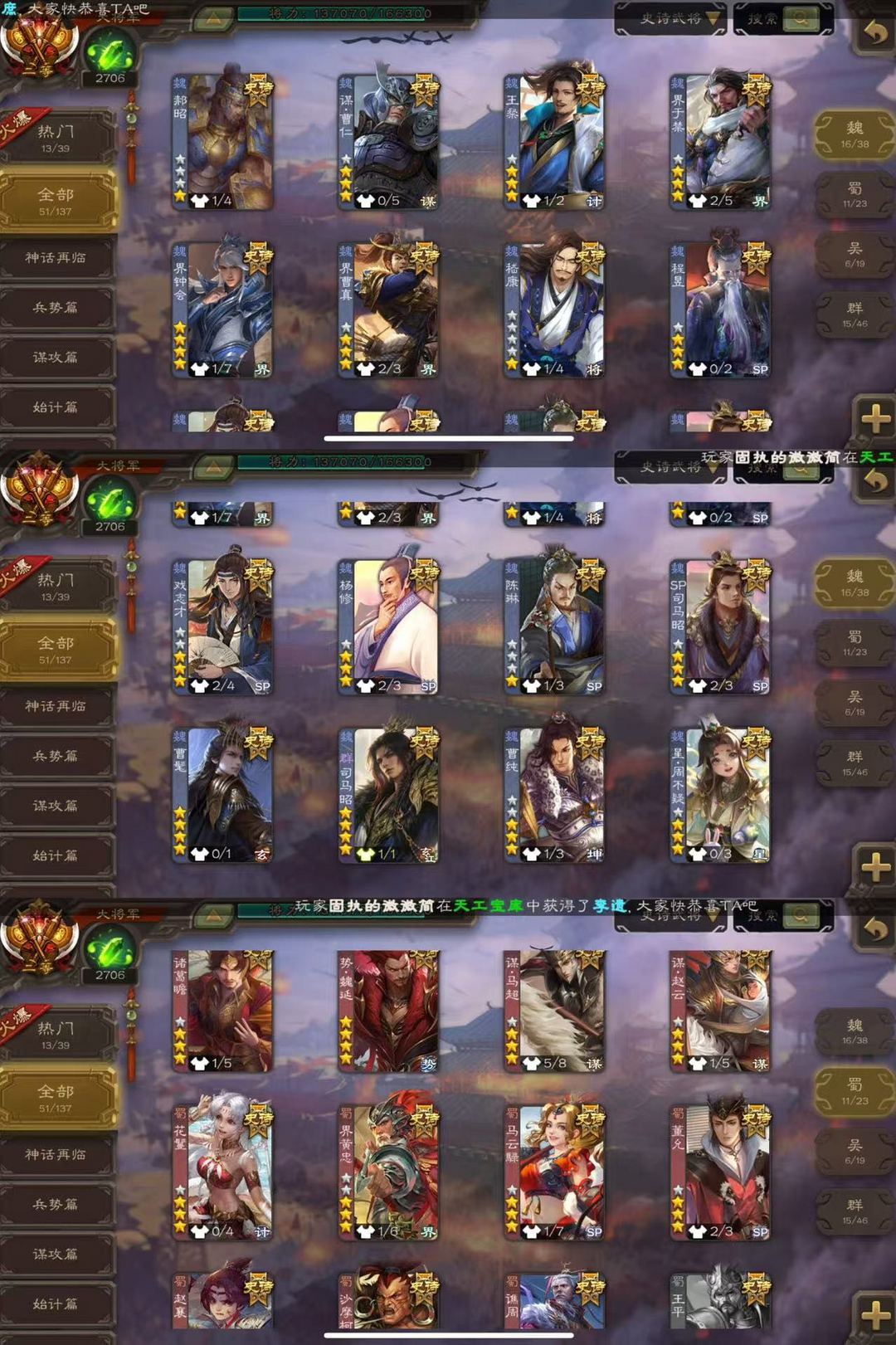 【三卡过万】二等大将军51史诗势魏延曹髦/双形态界钟会双形态司马昭回廊动杜预/谋曹仁界徐盛星甘宁阎象