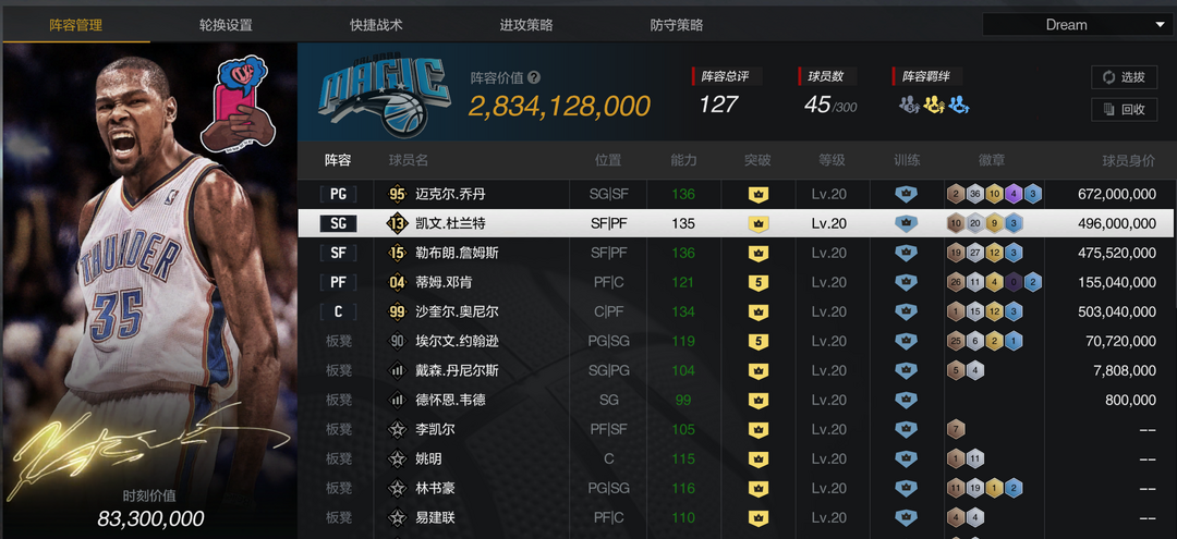 装备描述:【请到点提前结束游戏,以免掉信誉积分扣除押金,谢谢配合!】【29亿】【4贴纸】双时刻95乔丹❤️死神杜兰特❤️天神詹姆斯❤️新邓肯❤️湖人鲨