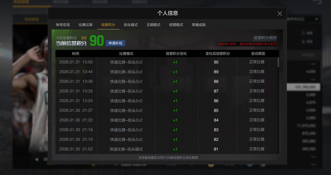 装备描述:⭐1月31日更新,信誉分90,见图⭐ ⭐本店专营稳定可排位账号,动态更新信誉积分图,请收藏店铺防迷路⭐ ⭐消极游戏、强退、连续掉信誉分拉黑⭐ ⭐乔丹、杜兰特、邓肯、詹姆斯、奥尼尔、科比、麦迪、张伯伦尽在本店,收藏关注防迷路⭐