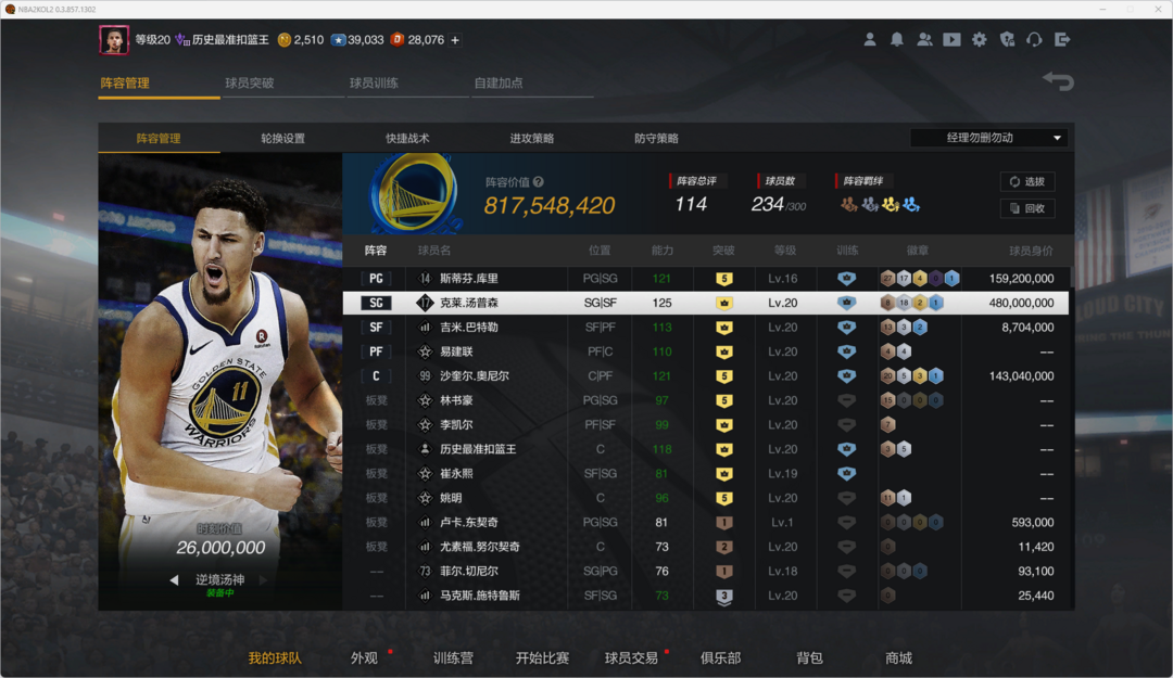 装备描述:水花兄弟!满突满训历史佛祖克莱汤普森!4突历史库里!5突奥尼尔!7突布伦森,,消极游戏拉黑