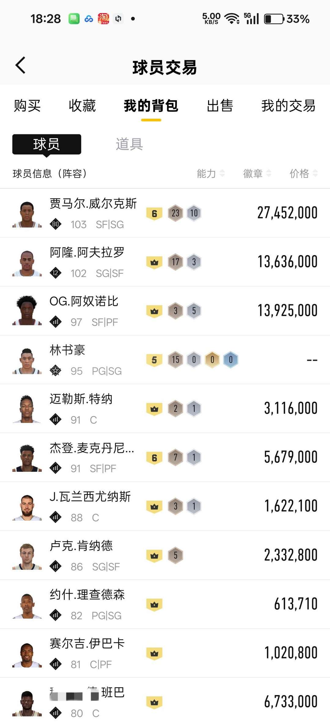 装备描述:(可排位)威尔克斯og阿奴诺比班巴林书豪特纳