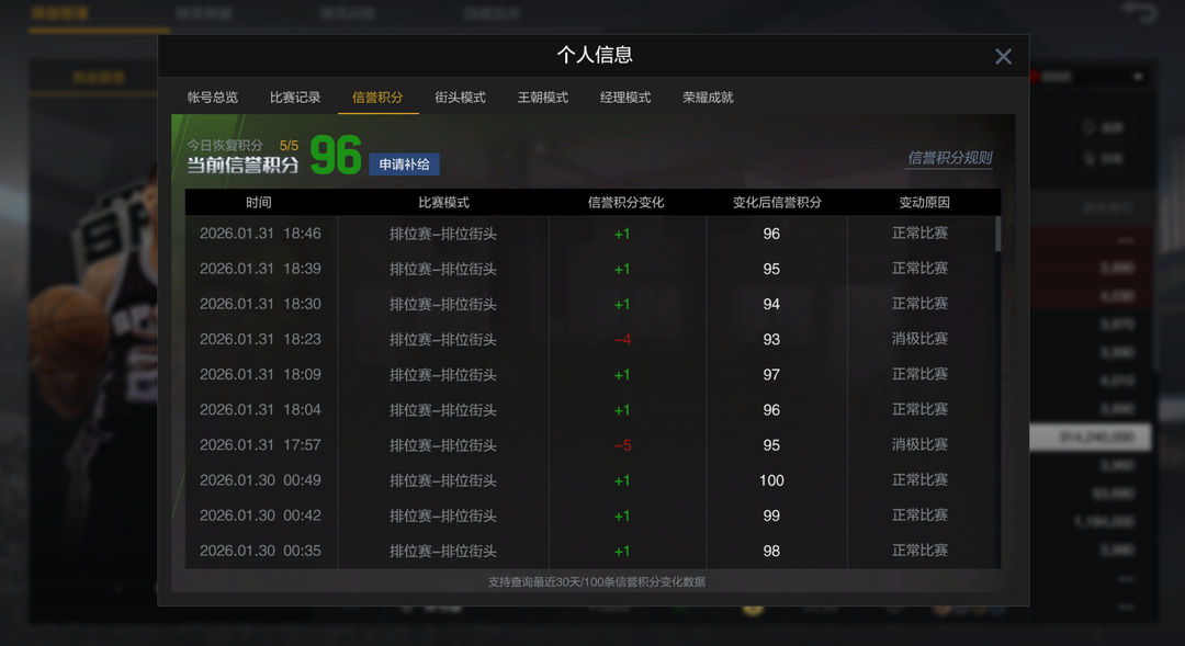 装备描述:⭐1月31日更新,信誉分96,见图⭐ ⭐无故撤单、消极游戏、强退、连续掉信誉分拉黑⭐ ⭐乔丹、杜兰特、邓肯、詹姆斯、奥尼尔、科比、麦迪、张伯伦尽在本店,收藏关注防迷路⭐
