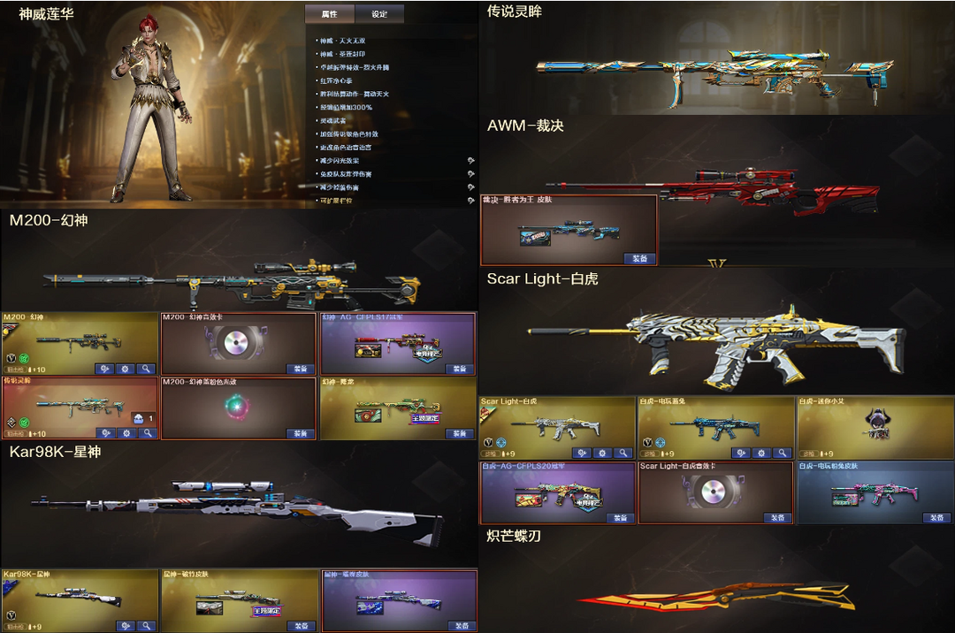 神威莲华传说灵眸☎幻神AG降龙音效+星神裁决☎白虎QBZ三件套+天罚天袭幻影朱雀+2柯尔特COP炽芒