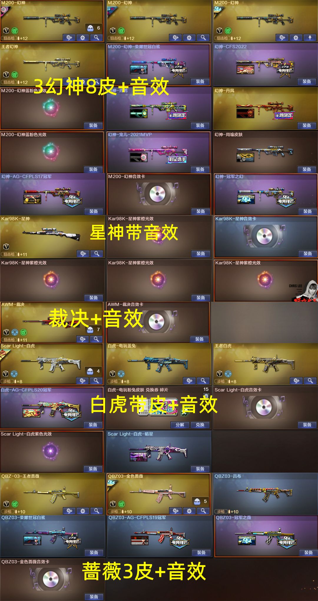 宗2幻兽套幻神8皮宠儿星神裁决qbz白虎带皮+卡/冠军特刃雷暴套6烈3炼狱