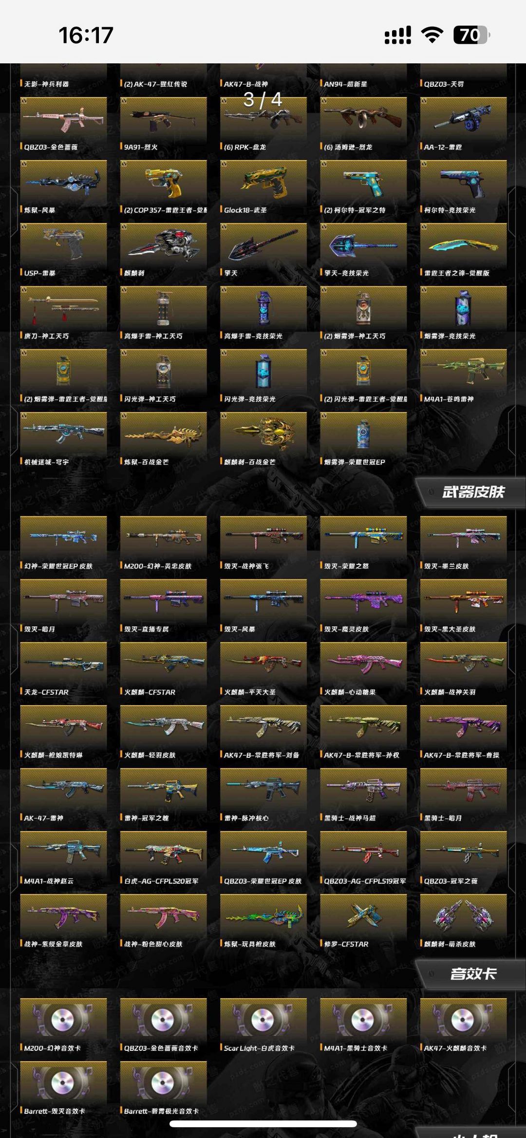 四防传说女帝/辉光/暗裔➕qbz幻神世冠ep皮 /幻神音效卡➕ 六盘六烈蝴蝶小钢➕冠军之特/刃