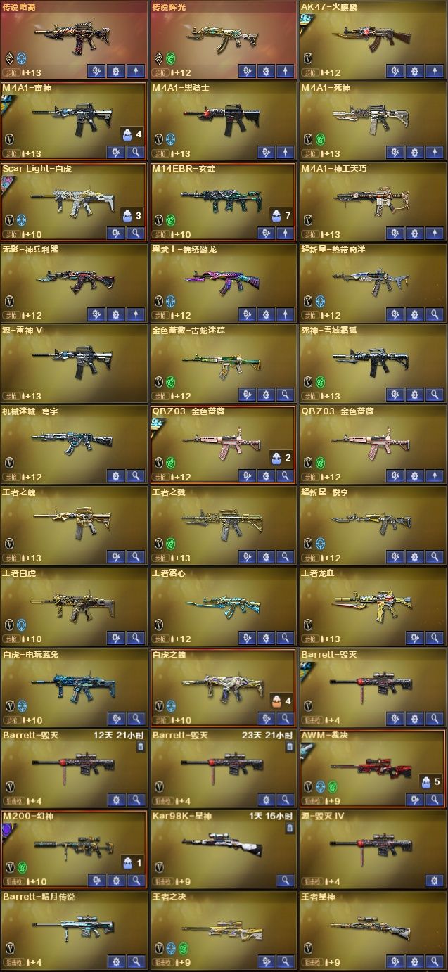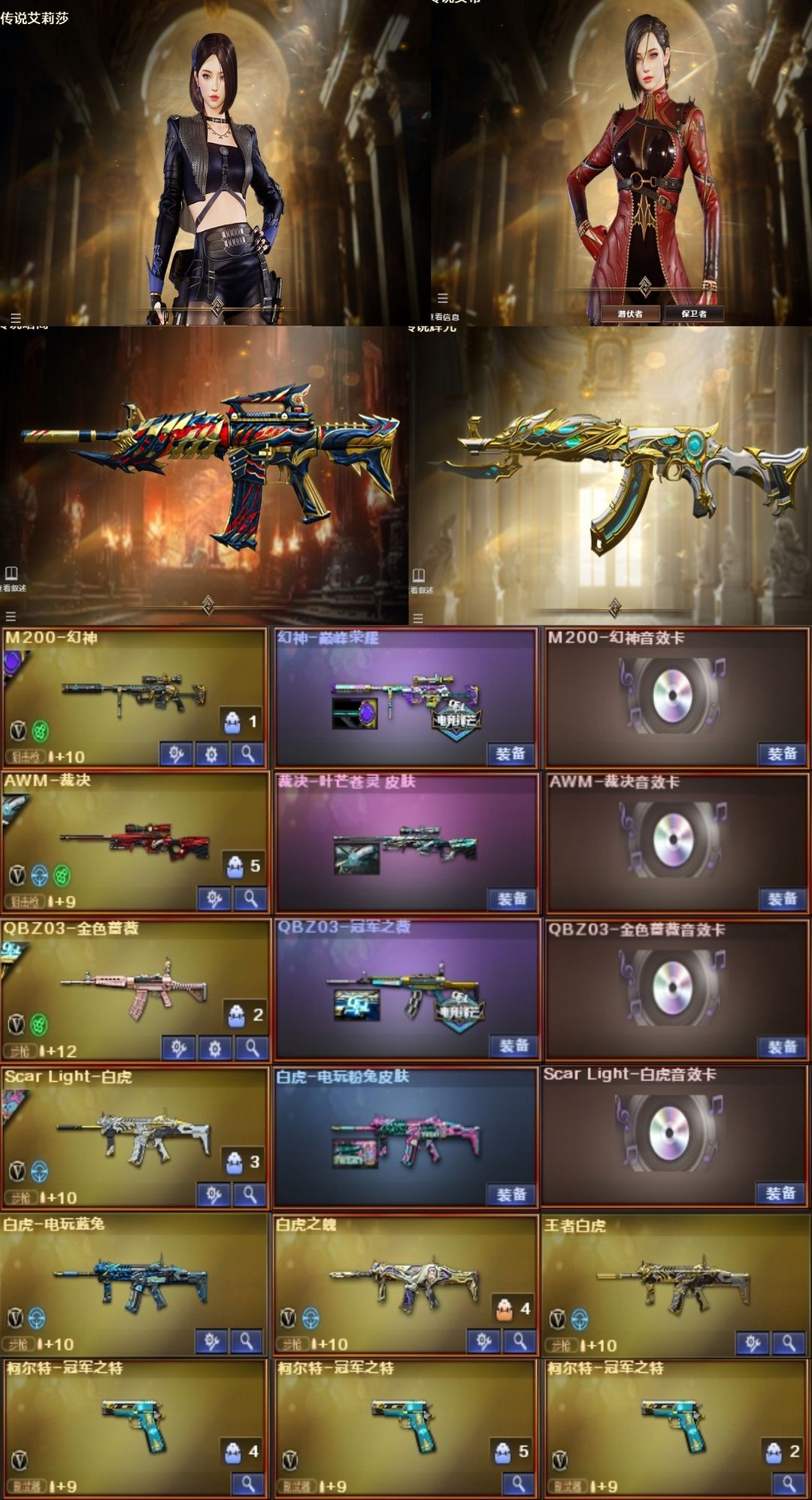 枪王【北部】传说女帝艾莉莎⭐传说辉光⭐传说暗翼⭐幻神套⭐裁决套⭐白虎套⭐金色蔷薇套⭐柯尔特*3usp
