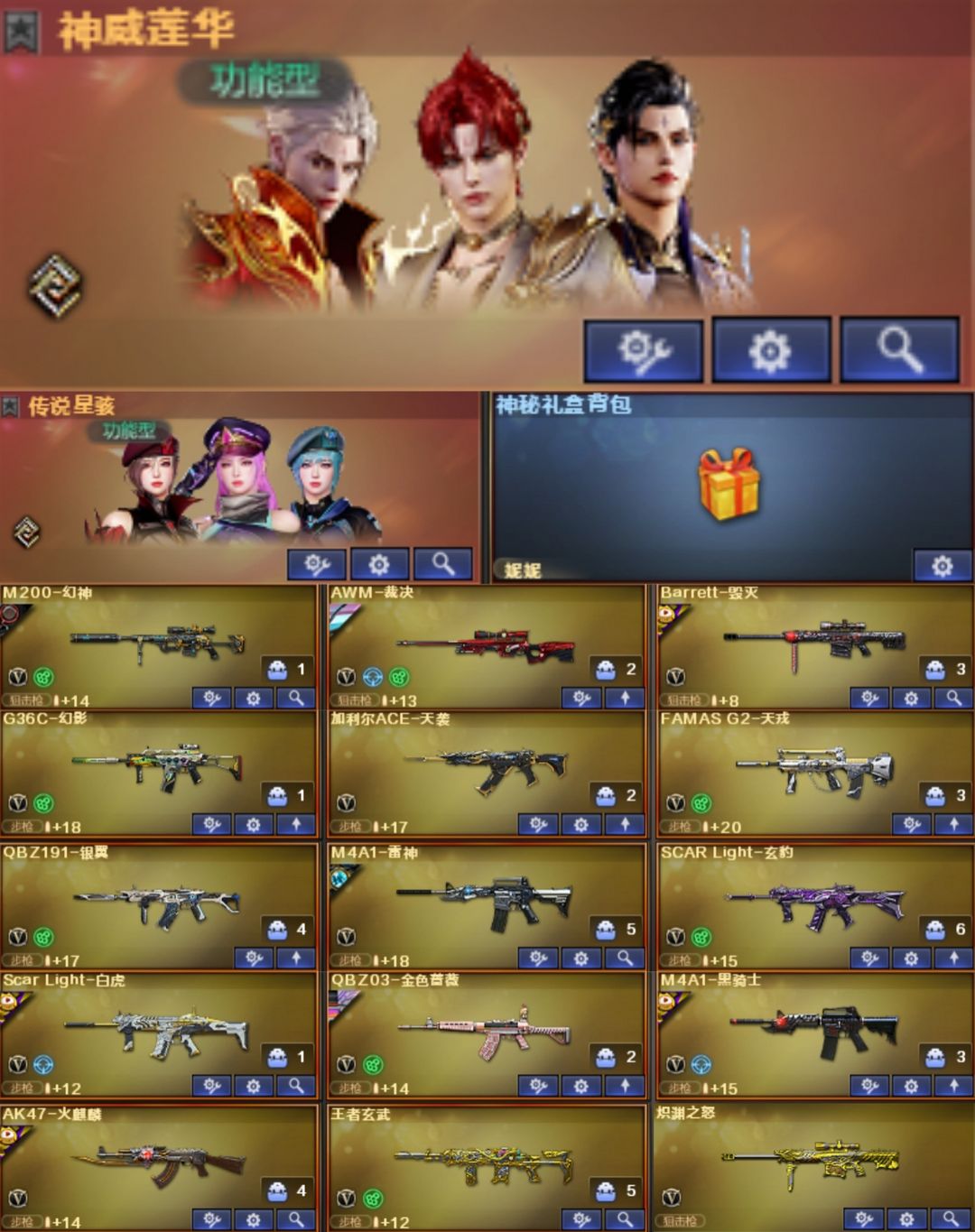 幻神传奇70KG神威莲华天袭幻影天戎⭐幻神卡KZ星火EP裁决卡紫罗兰⭐白虎虎牙冠虎5皮QBZ虎鱼5皮