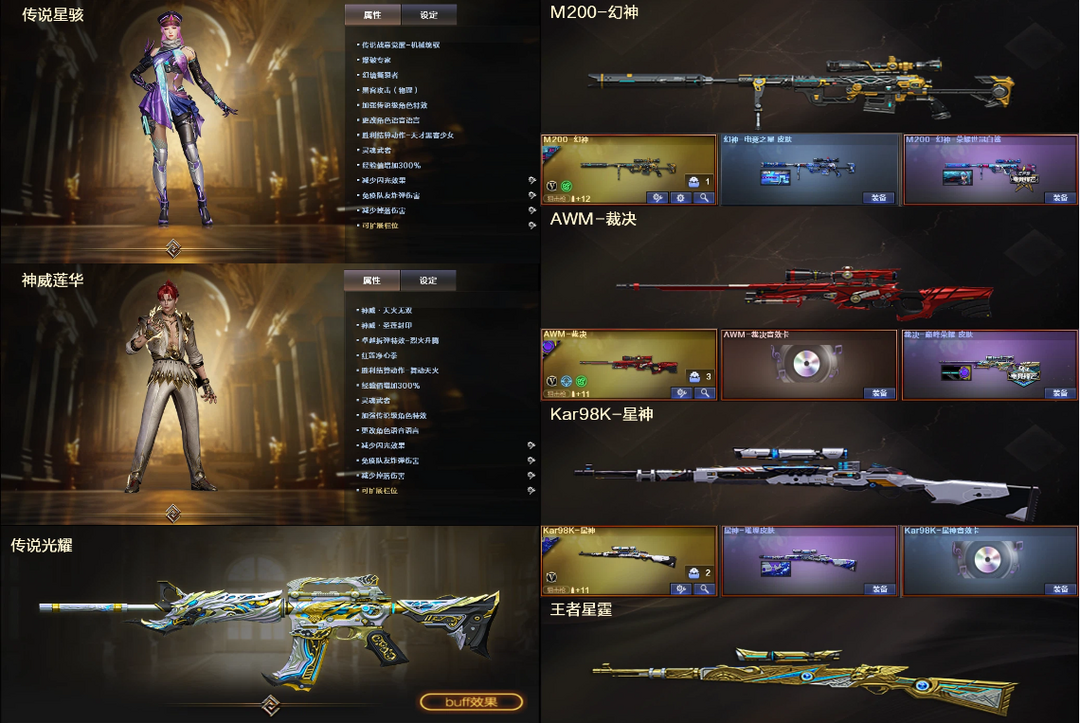 传说光耀星骇神威莲华☎幻神白鲨电竞+星神璀璨音效裁决巅峰音效☎白虎QBZ幻影朱雀+4质量副☎枪娘6烈