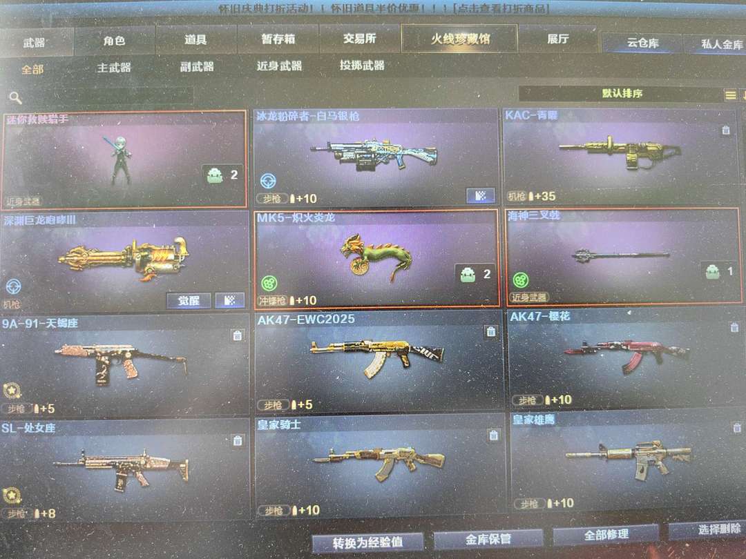 装备描述:三传说 生化爆破挑战全齐 传说幽冥 五烈 斯太尔蝴蝶 传说影煞 赤火炎龙 传说星骇 白虎九尾狐妖 各种v 雷暴刀 cop云龙 满手枪子弹 满天神 柯尔特 麒麟刺 刀号 雷霆手雷 屠龙 盘龙 可正常排位生化 上号不要动交易所券和点券 不要封号 押金正常退