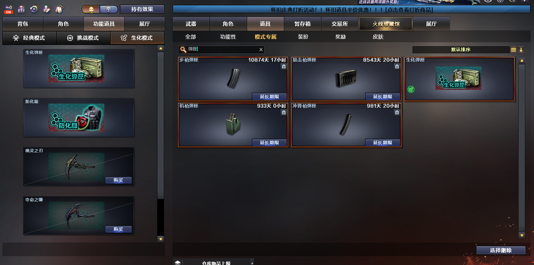 生化爆破拉满✅四防传说影煞✅炽芒蝶刃✅6盘6烈✅斯泰尔蝴蝶✅幻神毁灭三件套✅炽火炎龙✅全猎皮✅满弹匣