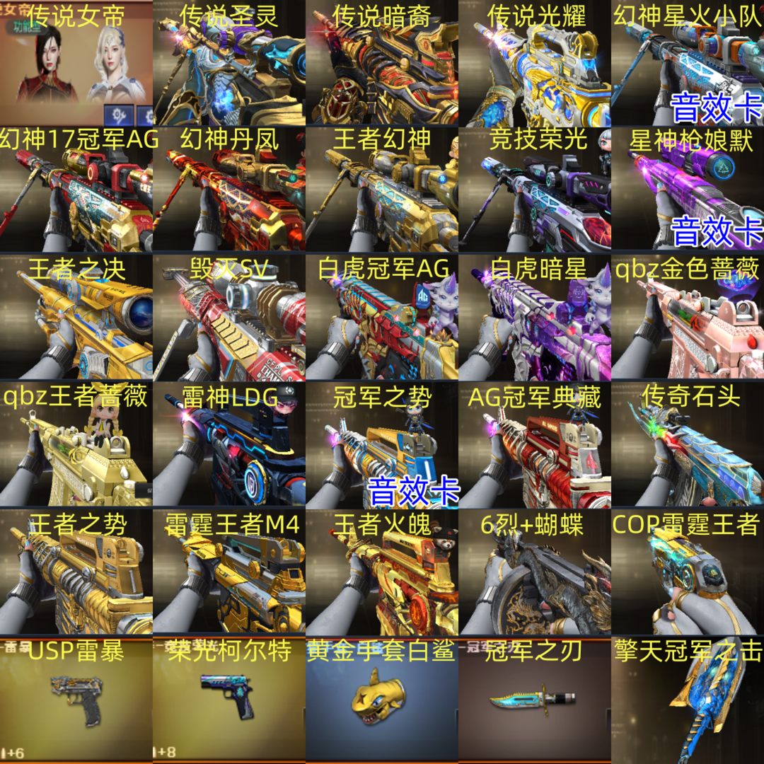 传说女帝/幻神星火AG丹凤幻神卡/星神枪娘墨星神音效卡/暗裔光耀圣灵/6烈蝴蝶/满配手枪/白虎AG/