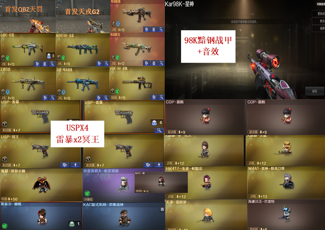 限制: 租号2次及以上 |装备描述:退枪王排位赛者永久拉黑,那个时间段被封拉黑哪个,不解释 >>>>>>毁号,涉及毁坏虚拟财产罪及计算机安全罪,请文明游戏素质游戏,让我们共建美好租号平台>>>>>> 本游戏账号:英雄武器243个; 王者武器24个。 装备不多,但是主武器、副武器、近身武器够用 拥有完美游戏体验。重要的是,特殊装备有:Barrett-毁灭、加特林-炼狱、AK47-火麒麟、AN94-超新星、雷霆之怒、M4A1-青龙、Barrett-朱雀、麒麟刺、M4A1-黑骑士、AK47-黑武士、AA-12-雷霆、M4A1-雷神、M200-幻神、HK417-朱雀、雷霆之锋、QBZ03-金色蔷薇、雷霆之契、M14EBR-玄武、USP-雷暴、AK47-雷暴、传说暗裔、Kar98K-星神、M4A1-夜魔、Scar Light-白虎、擎天-竞技荣光、M200-竞技荣光、柯尔特-竞技荣光、闪光弹-竞技荣光、M4A1-黑龙、传说辉光、烟雾弹-竞技荣光、COP-堕天神、黑骑士-海王、破空枪刃-夜魔、高爆手雷-竞技荣光、M4A1-雷霆、M4A1-玫瑰精灵、沙鹰-幻兽、AWM-天龙、王者之势-觉醒版、王者之锋-觉醒版、
