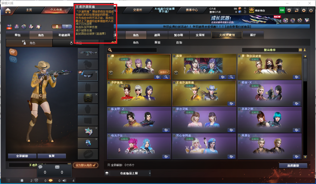 装备描述:排位:可以、、、、、、、、爆破四防:幻神4皮+音效(宠儿、N9、电流骇客、黄忠皮肤)、冠军之特、传说辉光、QBZ03-独角、白虎、QBZ金色蔷薇、、、幻神音效、蔷薇音效、毁灭音效、黑骑士音效、、、幻神音效、蔷薇音效、毁灭音效、、、1套幻灵、1套雷霆王者、、、爆破四防(王者沙漠玫瑰、鹰、雨棠)