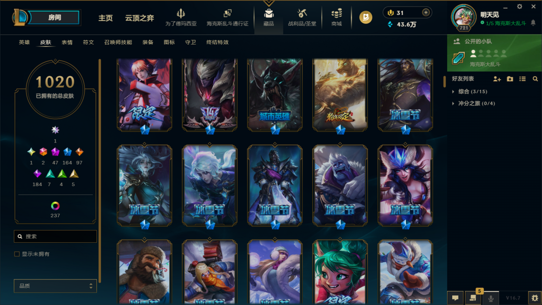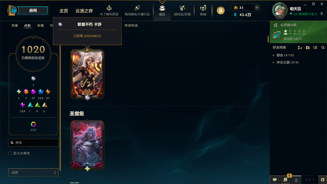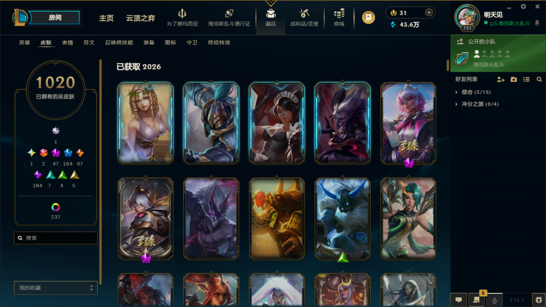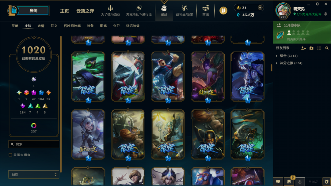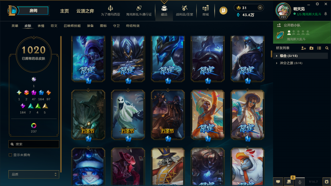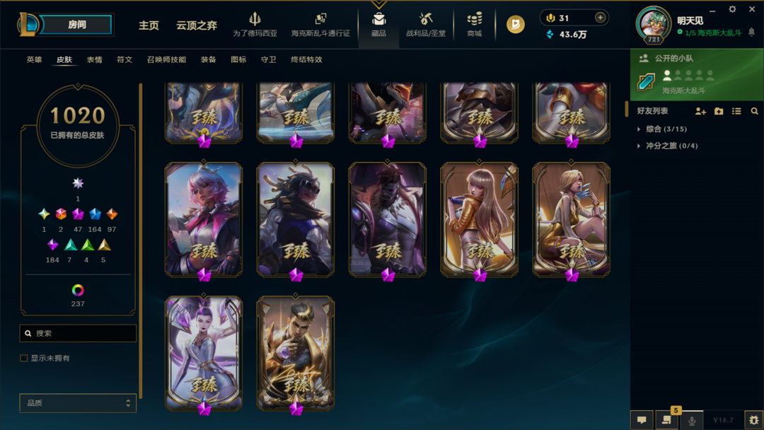 炸鱼带妹陪玩首选❤️1405皮肤❤️联盟四区可排位❤️ UZI 卡莎签名限定 + 黑君王